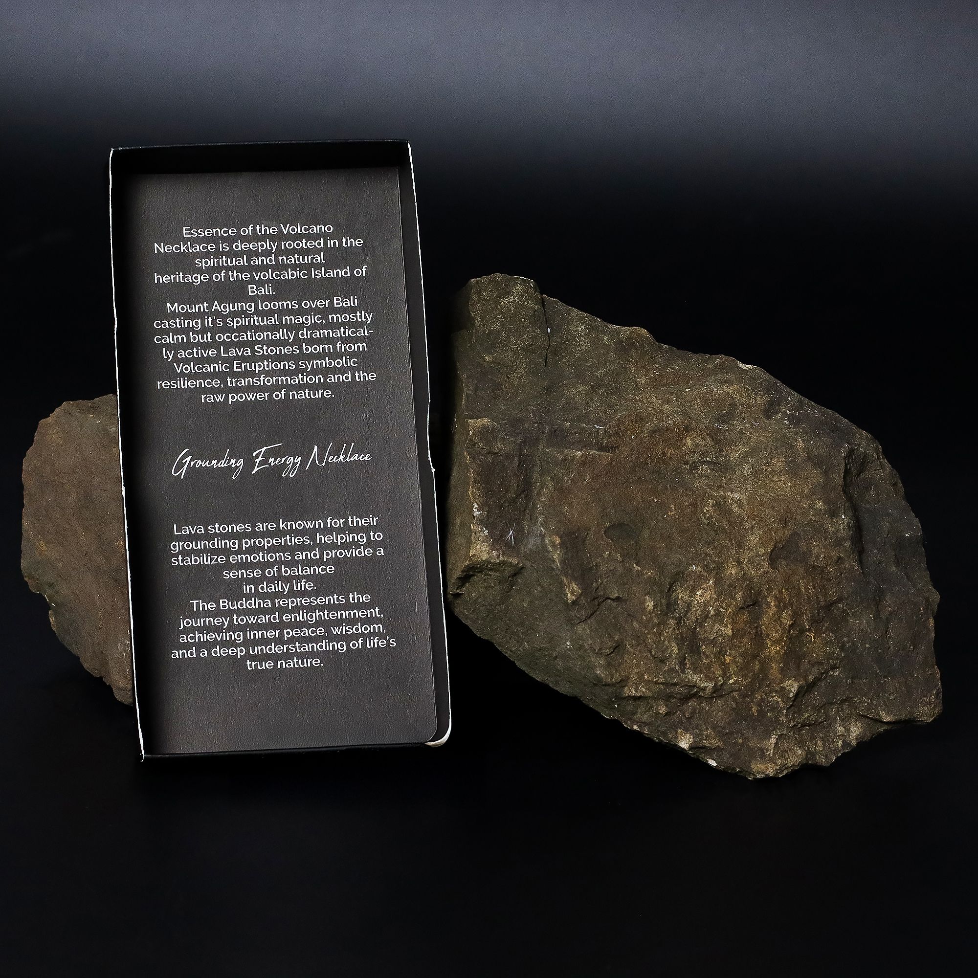 Hecho a mano en Bali, este llamativo collar está hecho de piedra de lava natural, conocida por su energía de enraizamiento y calma. Un delicado dije de Buda de plata y un suave borla añaden un toque espiritual, haciéndolo tan significativo como hermoso.