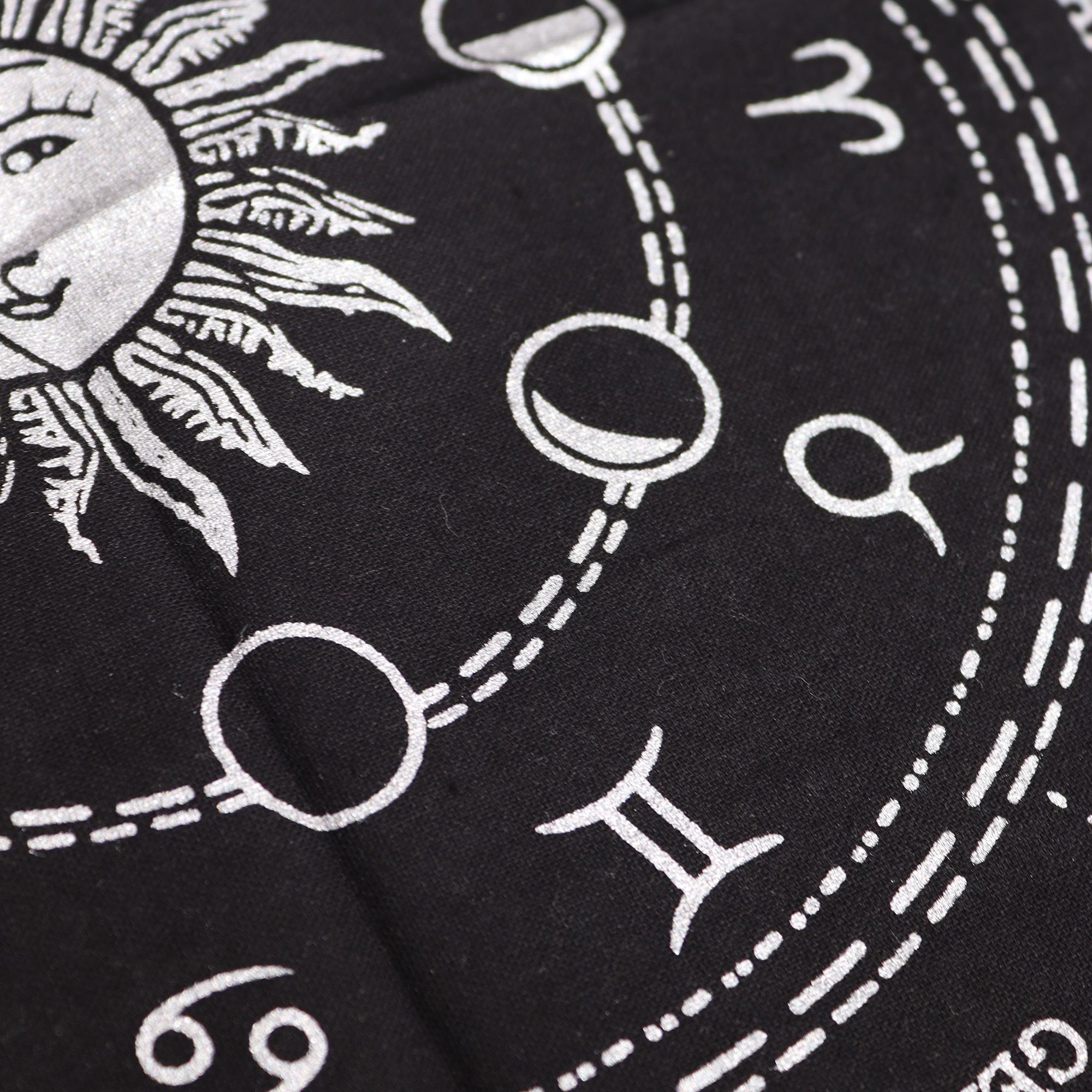 Su versatilidad también lo convierte en una hermosa pieza decorativa, ya sea como mantel para una mesa o como un distintivo colgante mural. Anima a tus clientes a combinarlo con otros productos astrológicos como cartas del tarot, cristales zodiacales y velas, creando así un ambiente celestial que elevará su práctica espiritual y les ayudará a sintonizar con su verdadero ser.