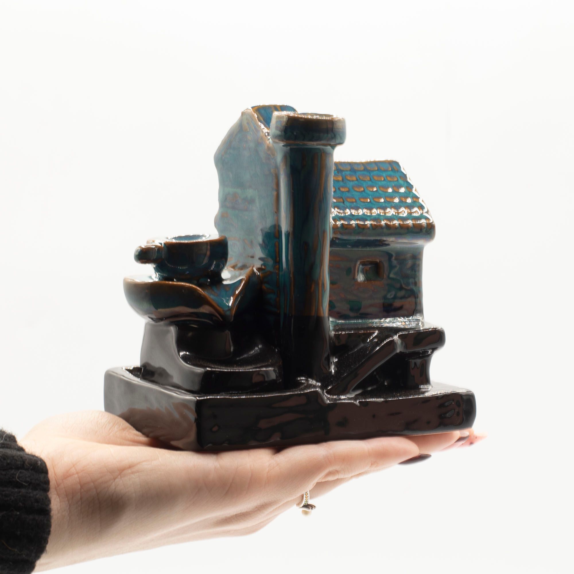 Crea un punto focal relajante con este quemador de incienso de contraflujo Watermill House. Diseñado para su uso con conos de incienso de contraflujo, permite que el humo descienda suavemente a través de la casa y la base, creando un efecto relajante similar a una cascada.